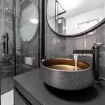 Este apartamento cuenta con una terraza y una zona de estar equipada con climatizador y TV y TV de pantalla plana con canales vía satélite. Las ventanas insonorizadas y el sofá garantizan una estancia más agradable. El baño está equipado con ducha a ras de suelo y un inodoro separado de la ducha. Además, hay secadores de pelo y toallas de baño.